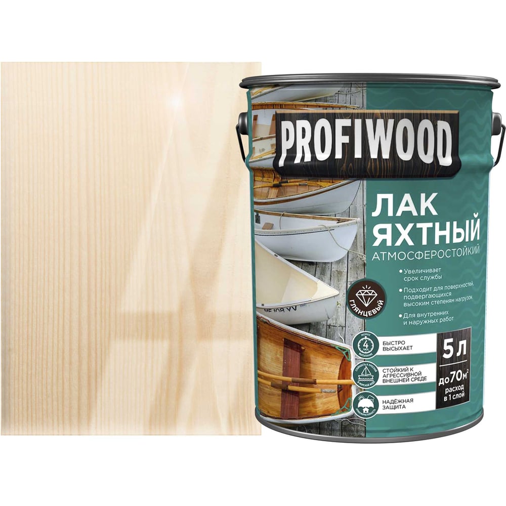 Алкидно-уретановый яхтный лак PROFIWOOD (атмосферостойкий; глянцевый; 5 л; 4.6 кг) 75162