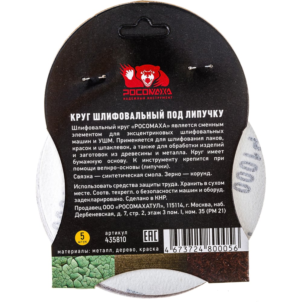 Круг шлифовальный 125 мм, P1000, 5 шт Росомаха 435810