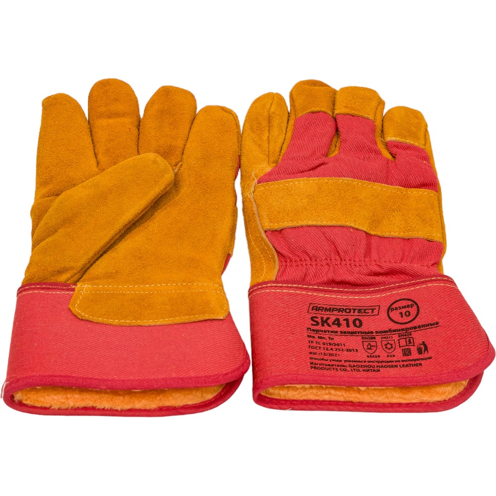Утепленные спилковые комбинированные перчатки Armprotect SK410