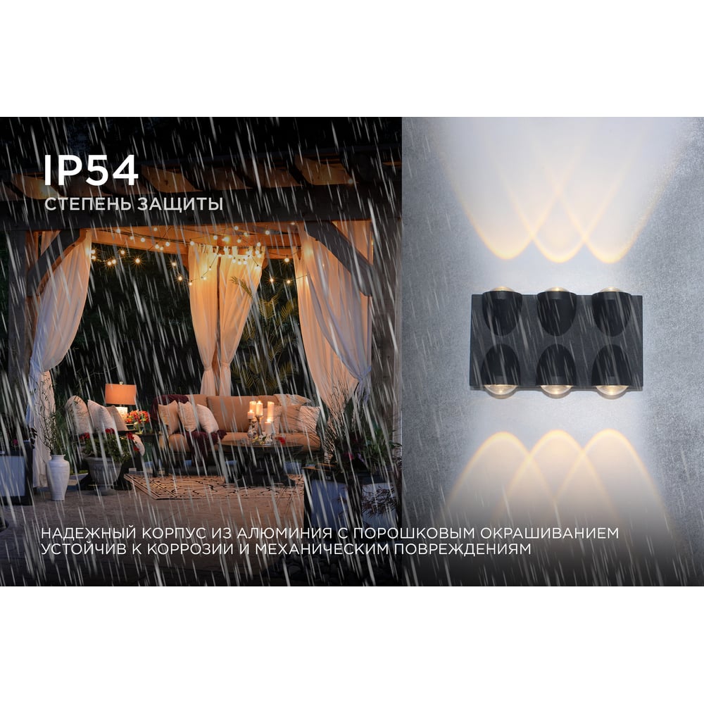 Садово-парковый светильник Apeyron светодиодный, декоративный, настенный, 6Вт, 480Лм, 3000К, IP54, черный 31-03