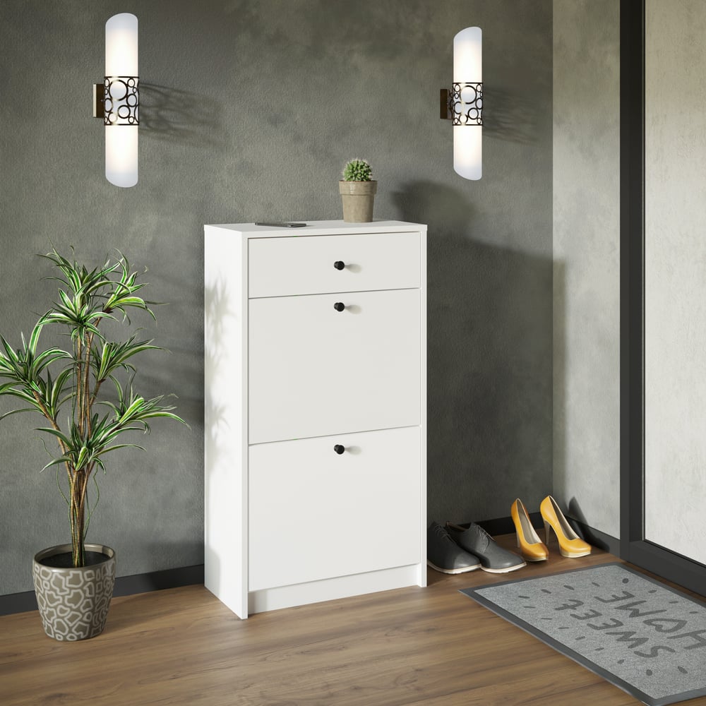 Габариты без упаковки 550x1000x280 мм Высота 1000 мм Ширина 550 мм Вес нетто 25 кг Зеркало нет Глубина 280 мм Количество полок 5 шт Закрытая есть Количество ящиков 3 шт Материал каркаса ЛДСП Наличие колес нет С сиденьем нет Цвет каркаса белый Покрытие фасадов матовое Цвет полок/фасада белый Тип обувницы тумба Материал полок/фасада ЛДСП