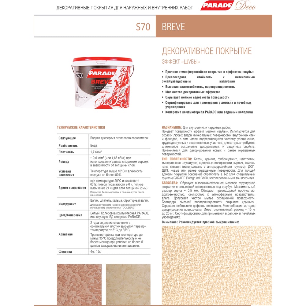 Декоративное покрытие PARADE DECO Breve S70 90001905113