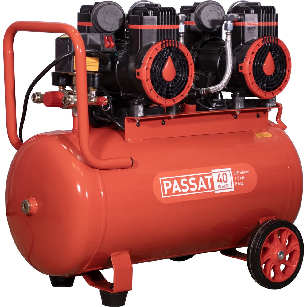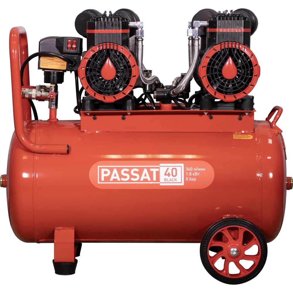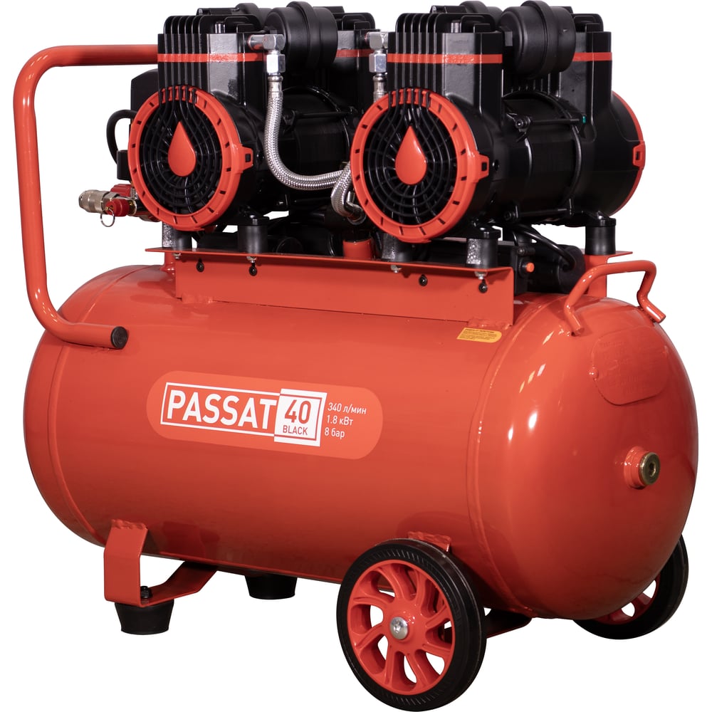 Компрессор Aurora PASSAT-40 BLACK тихий, без масл. 2 режима работы 40л, 340л/мин, 1.8кВт 31400