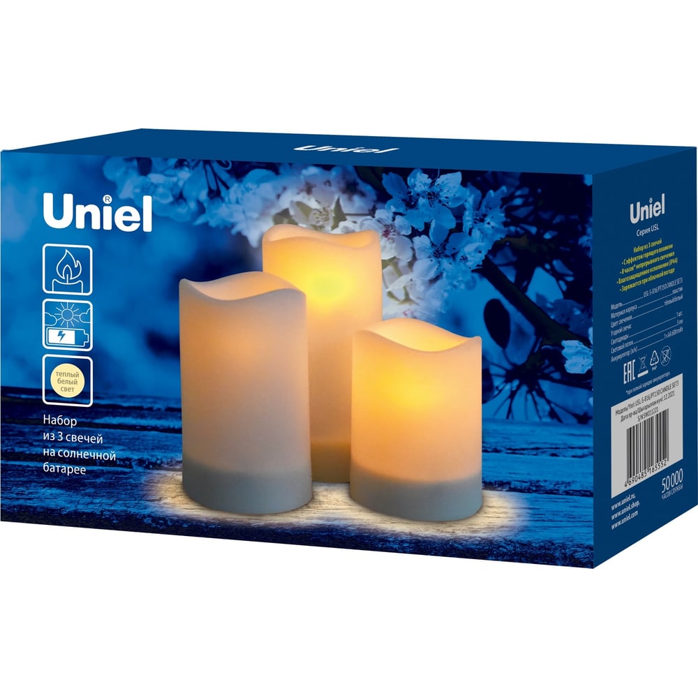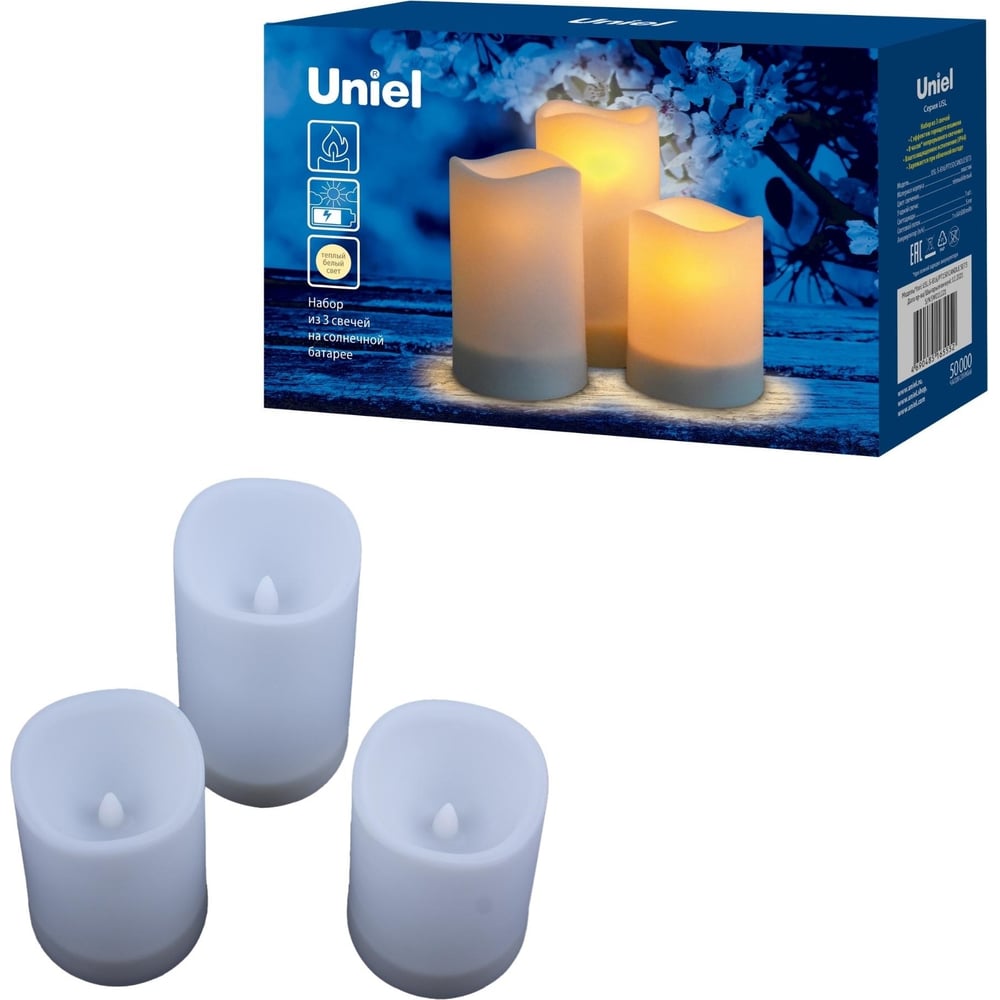 Садовый светильник на солнечной батарее Uniel «Свеча», в наборе из 3 штук USL-S-816/PT150 CANDLE UL-00009381
