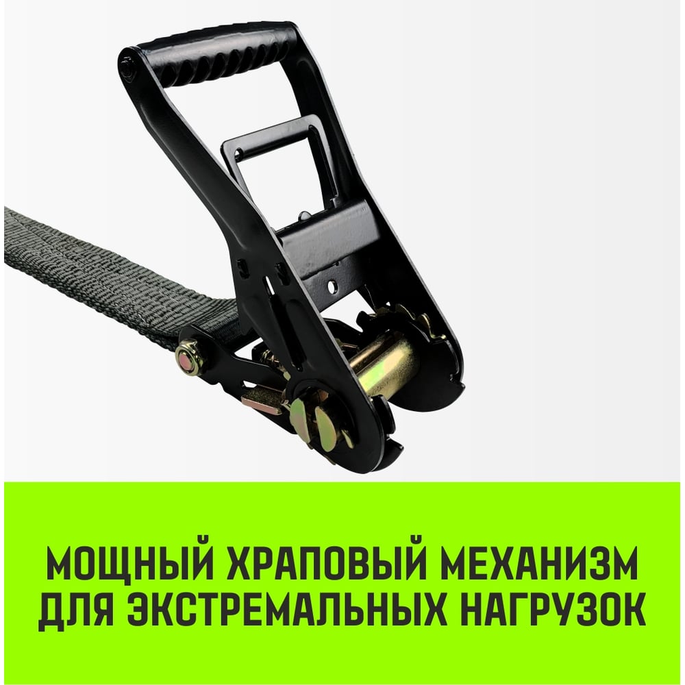 Материал полиэстер Ширина 50 мм Цвет черный Тип ремень с крюками и фиксатором Класс товара Профессиональный Вес нетто 3.186 кг ГОСТ нет Длина 10 м Количество в упаковке 1 шт ТУ нет Стяжное усилие 6 т