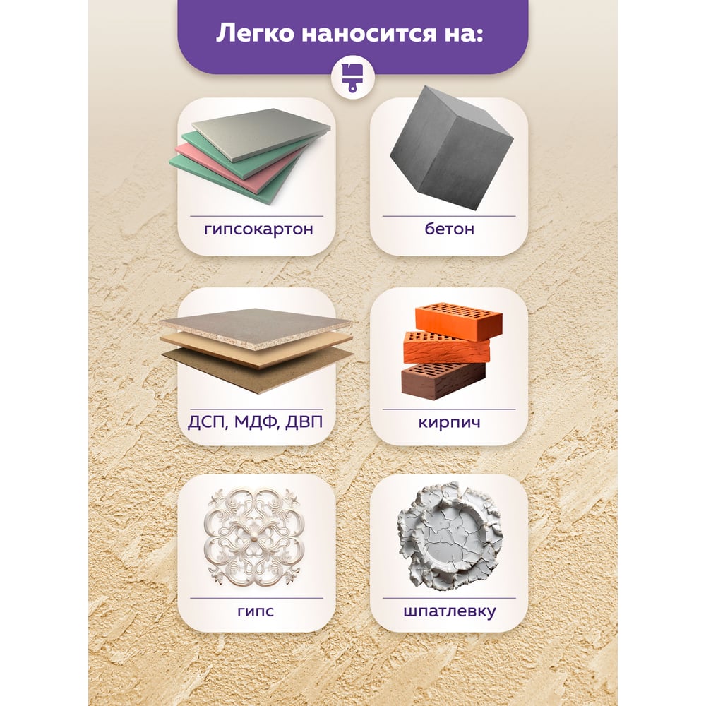 | Поверхность применения | бетон, цементные и гипсовые штукатурки, кирпич, поверхности, ранее окрашенные водно-дисперсионными красками |