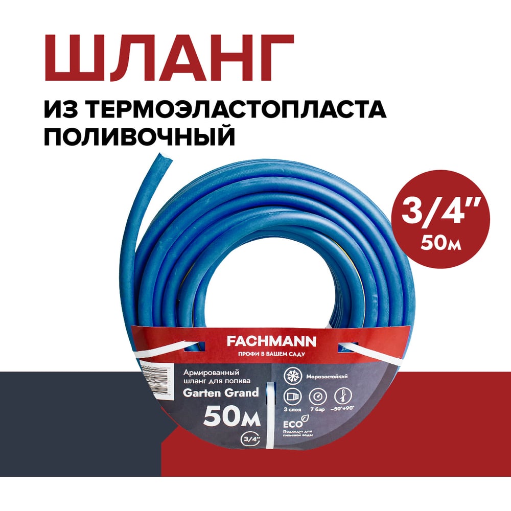 Садовый поливочный шланг Fachmann Garten Grand 3/4, морозостойкий ТЭП 50м, 3-х слойный 19 мм 05.023