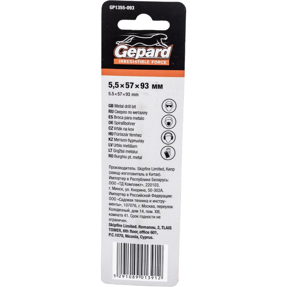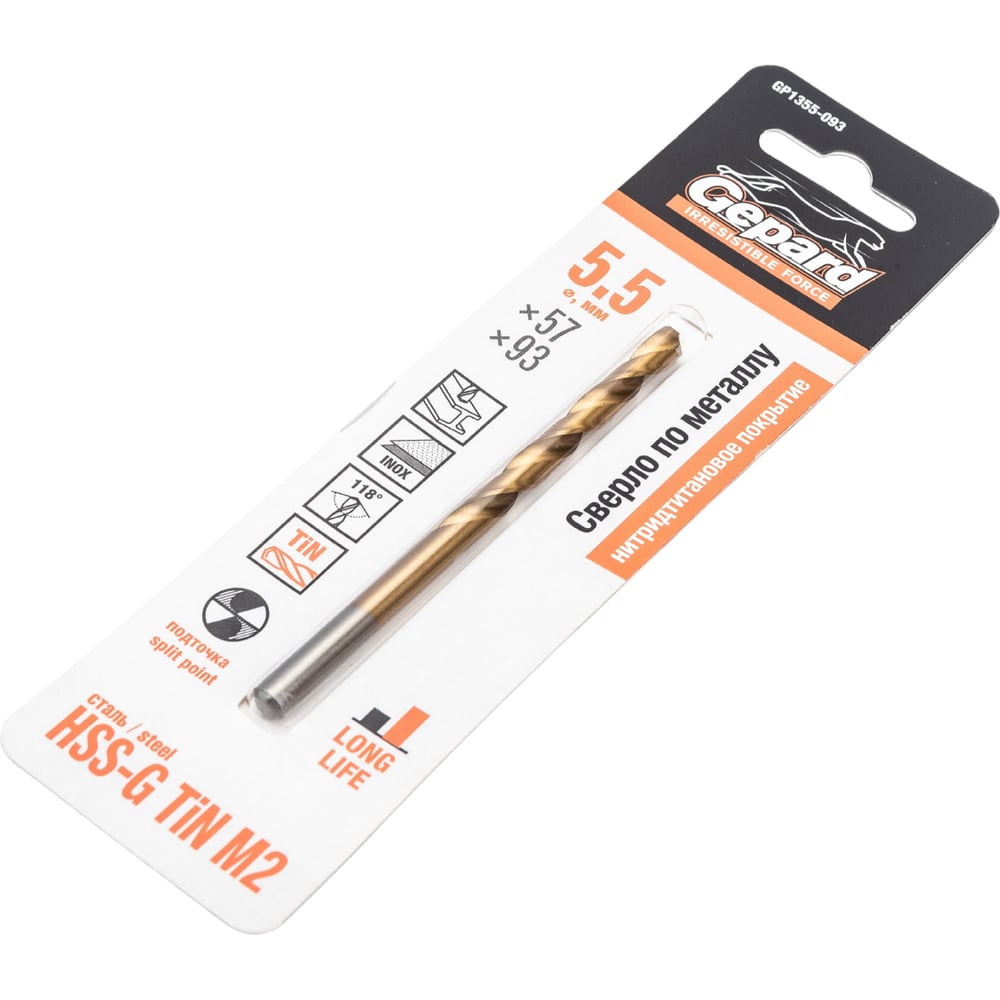 Сверло спиральное по металлу 5.5x57x93 мм, HSS TIN Gepard GP1355-093