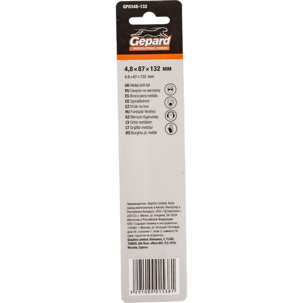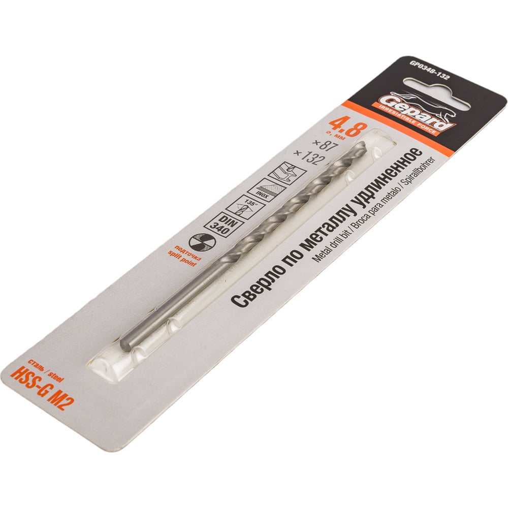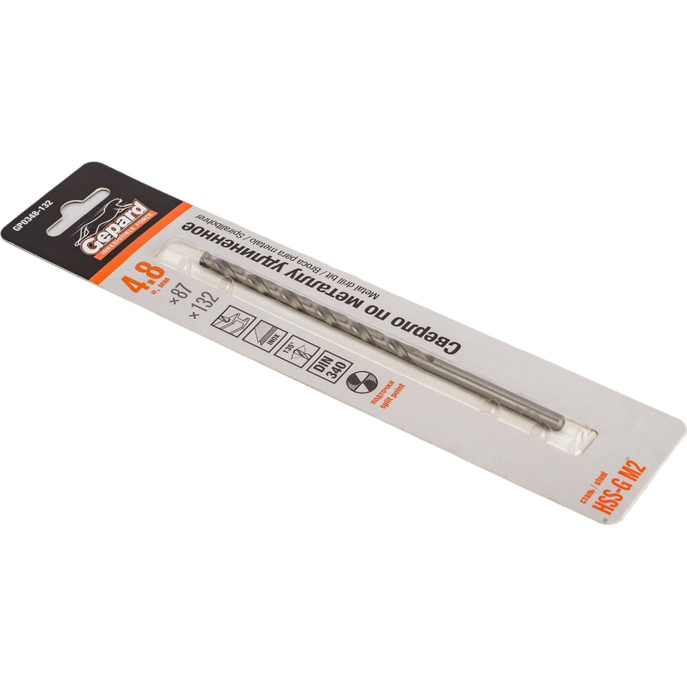 Сверло спиральное удлиненное по металлу 4.8x87x132 мм, HSS-G Gepard GP0348-132