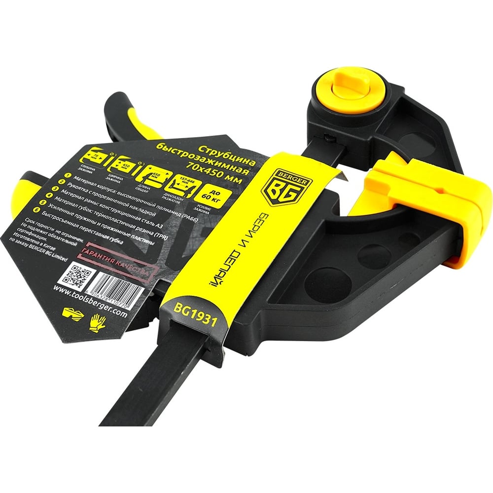 Быстрозажимная струбцина Berger BG 70*450мм, зажим до 60кг BG1931