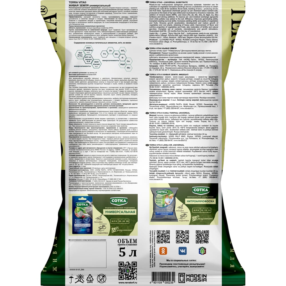 Универсальный грунт Terra Vita Живая Земля 4601104000239