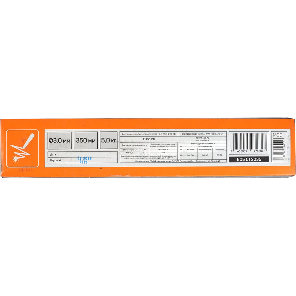 Электроды сварочные АНО-21 3 мм, 350 мм, 5 кг Patriot 605012235