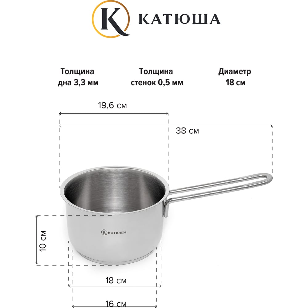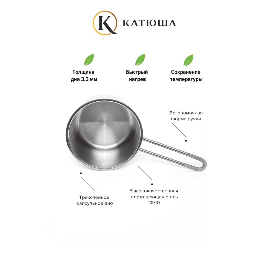 Ковш Катюша Марта нержавеющая сталь, 2.3 л, 18x10 см, без крышки, 110-18-0
