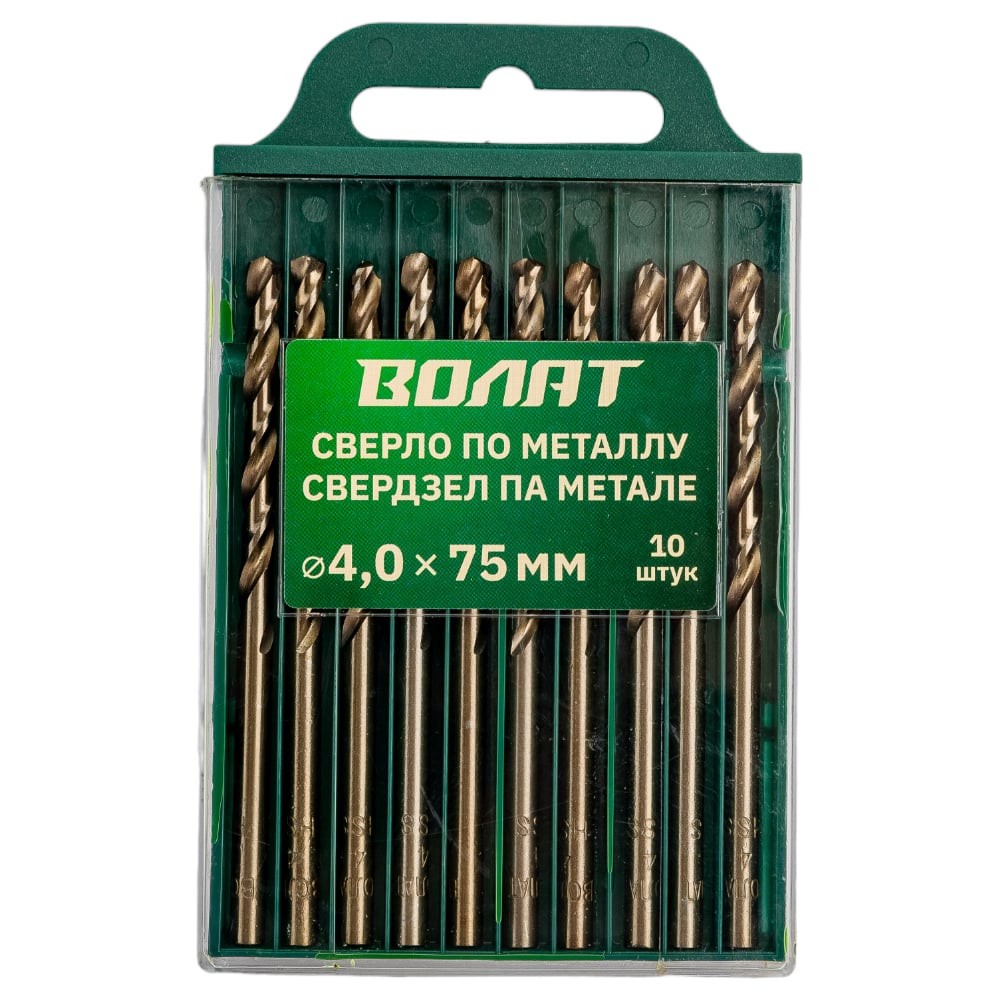 Сверло спиральное по металлу 4x43x75 мм, 10 шт ВОЛАТ 85040-075