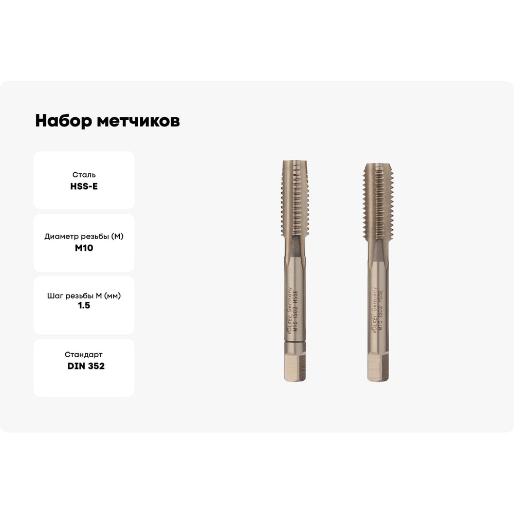 Набор метчиков из 2-х шт. VOELKEL М10 шаг 1,5 мм HSSE DIN352 V57346-2PC