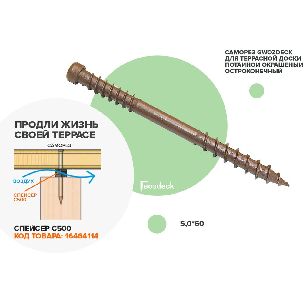 Саморез для террасной доски 5,0х60 Ruspert 1000 T15, 100 шт. Гвозdeck 20635060ECTXWG4