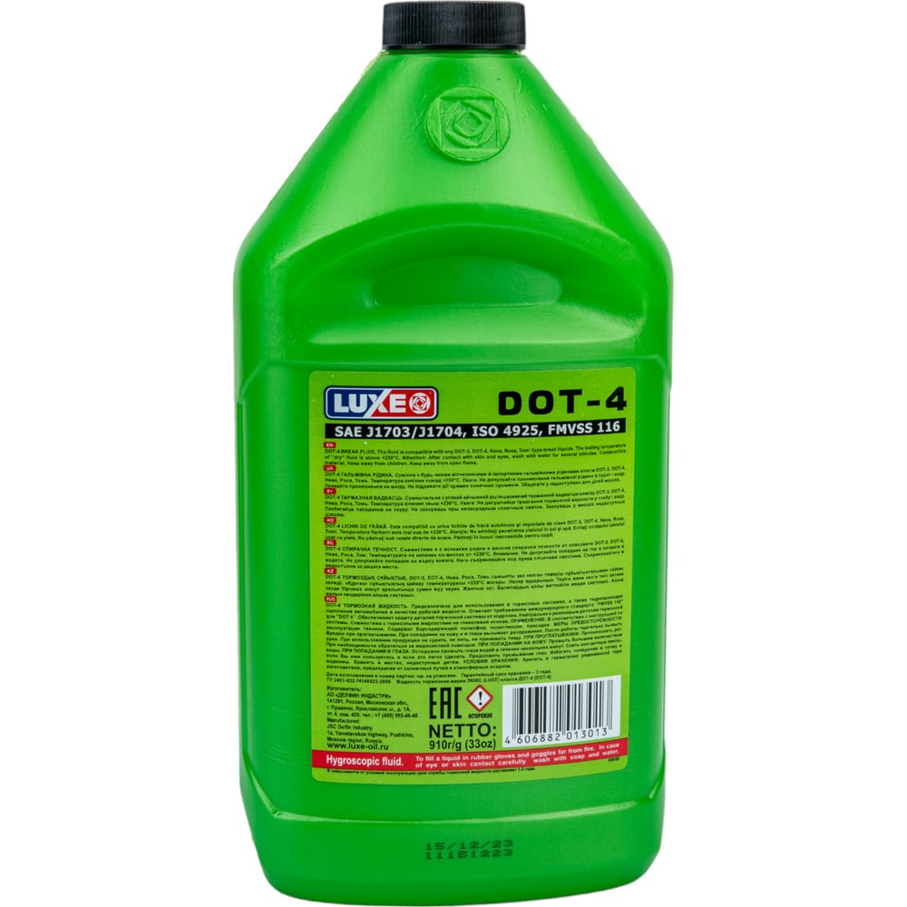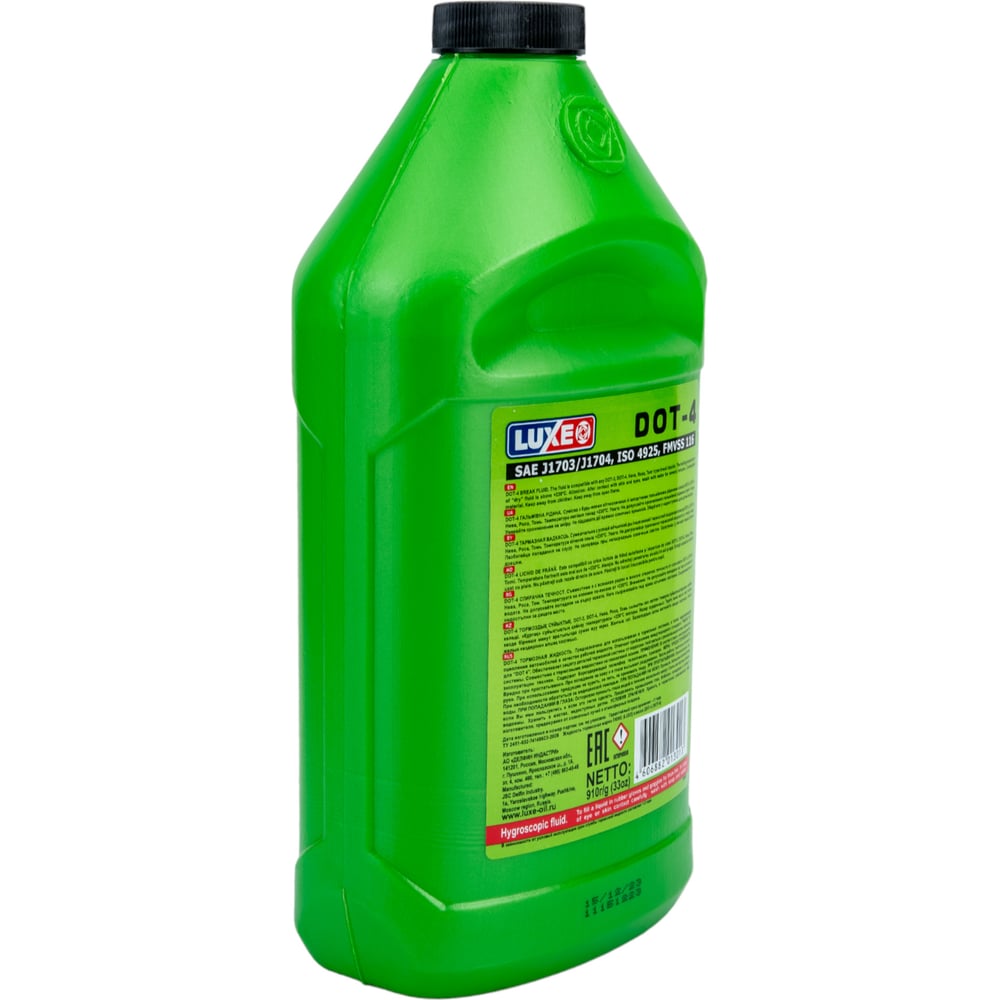 Тормозная жидкость LUXE dot-4, 910 г, зеленая канистра 638