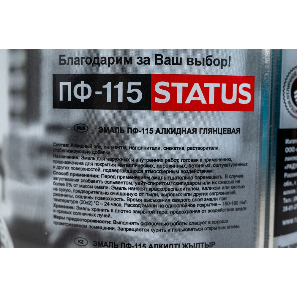 Атмосферостойкая краска Радугамалер ПФ-115 STATUS 4650001277169
