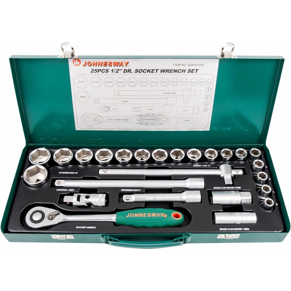 Набор торцевых головок 25 предметов 1/2" DR (10-32 мм) Jonnesway S04H4125S