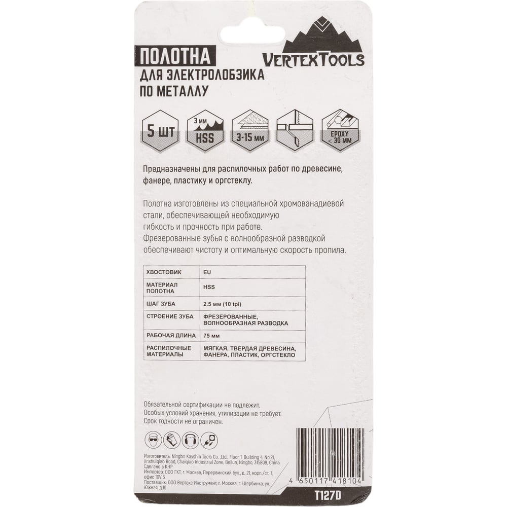 Полотно 5 шт для электролобзика vertextools T127D