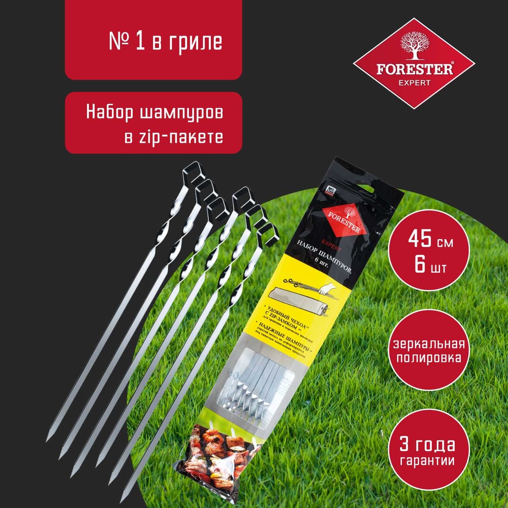 Набор шампуров малых в блистере (6 шт.) FORESTER RZ-450SB