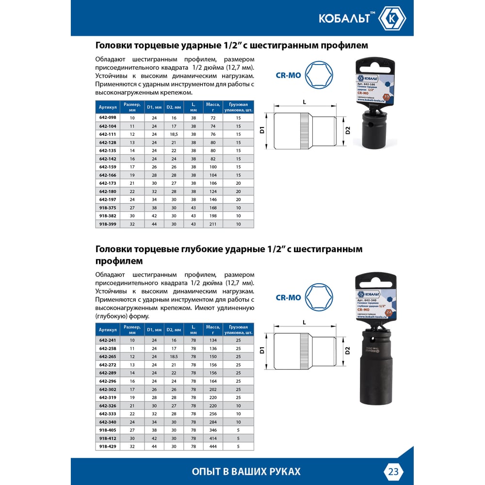 Глубокая ударная торцевая головка 1/2, 24мм, Cr-Mo КОБАЛЬТ 642-340