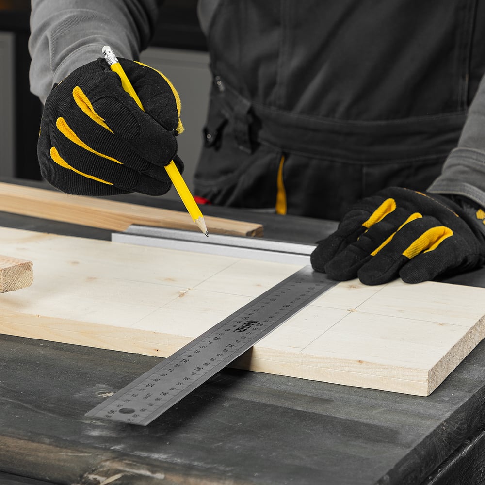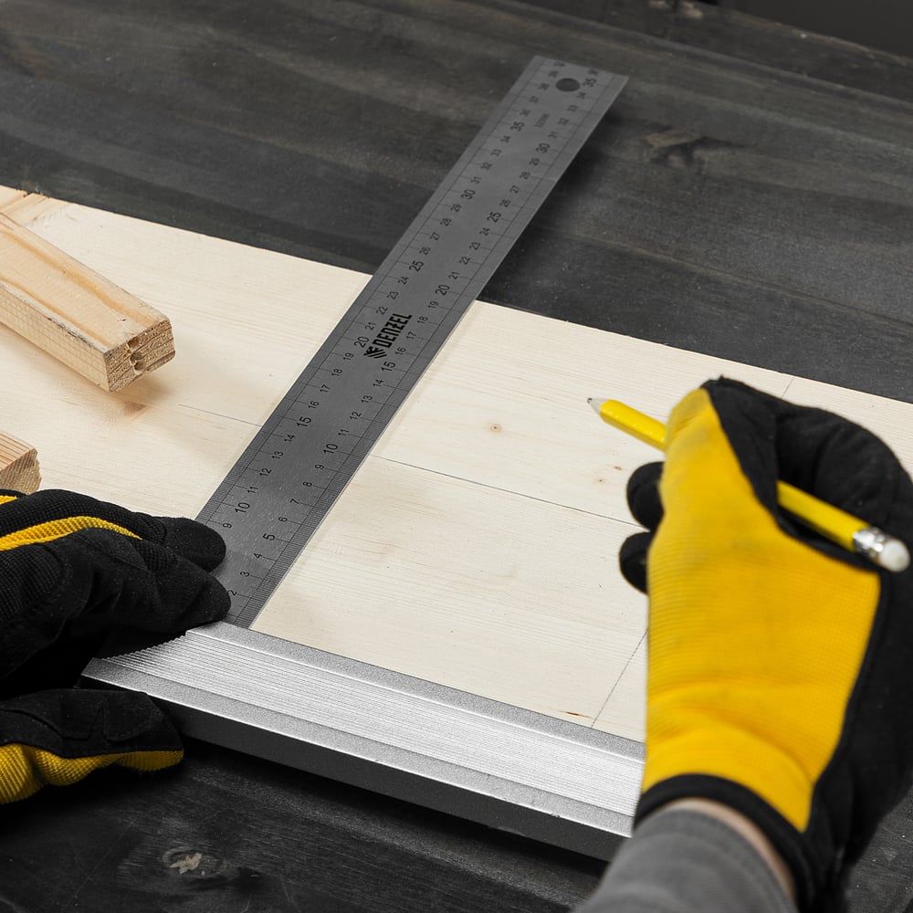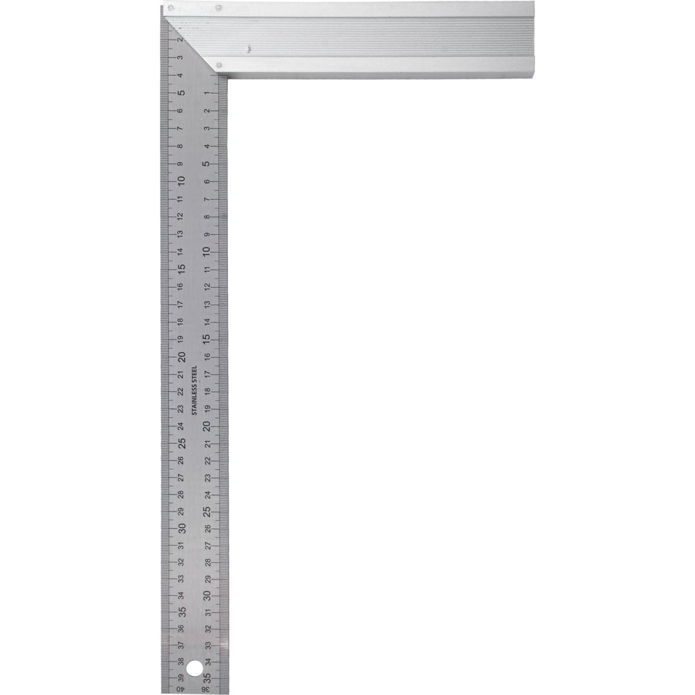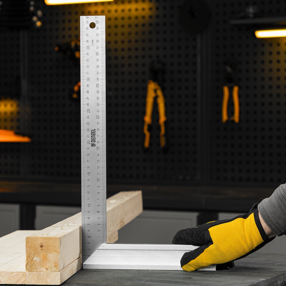 Угольник Denzel нержавеющая сталь, градуировка, алюминиевое основание, 400 мм 32398