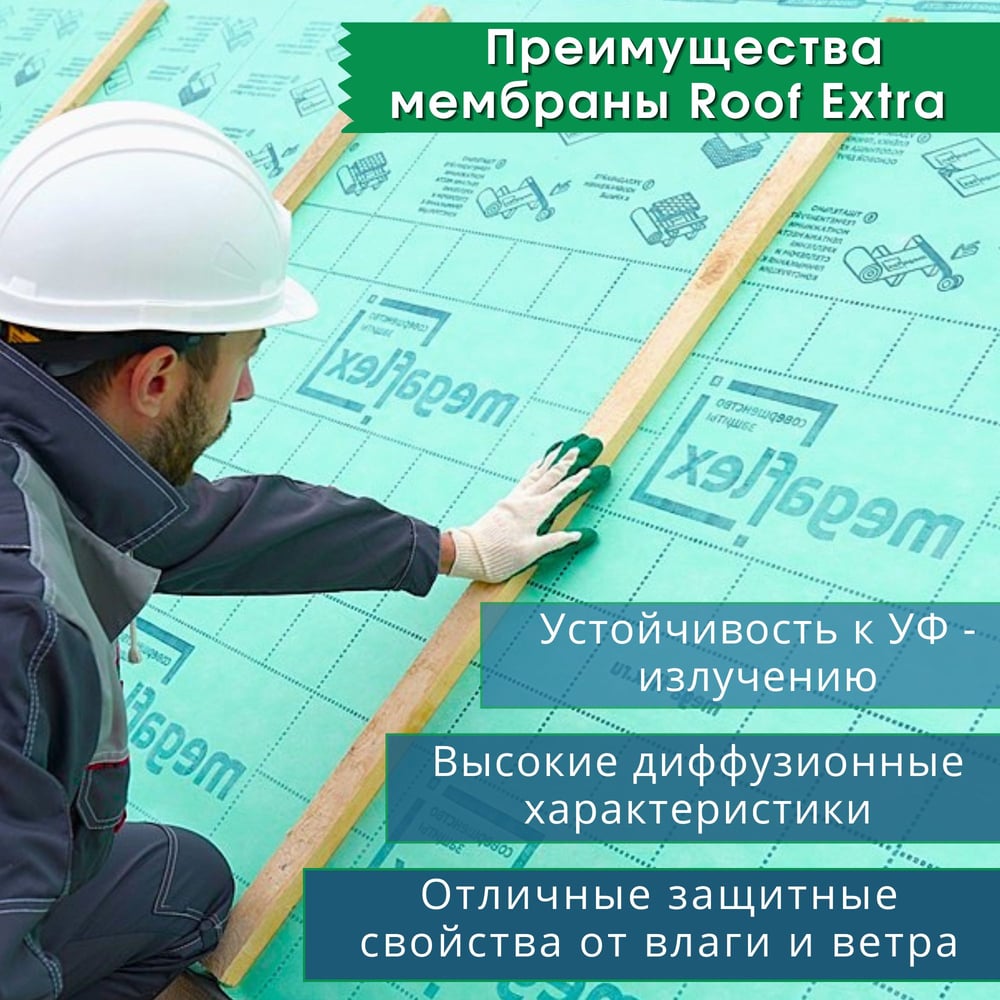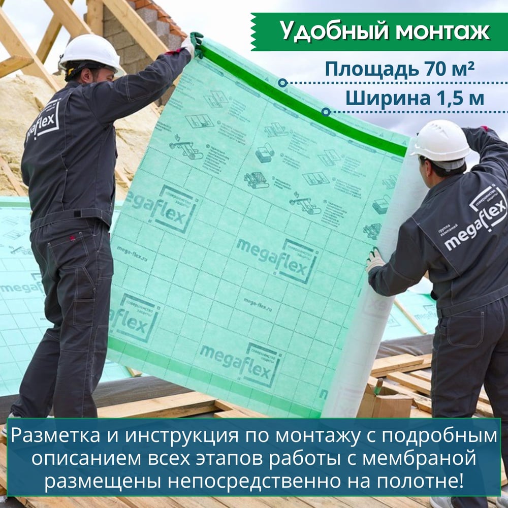 Гидро-ветрозащитная усиленная паропроницаемая диффузионная мембрана Megaflex Roof Extra AM ш 1.5, 70м2 2 клеевые MFREX.150.70
