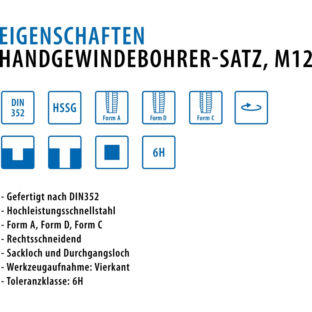 Ручные метчики GSR M12х1,75 HSSG DIN352 6H набор 3 шт для глухих и сквозных отверстий B00105250