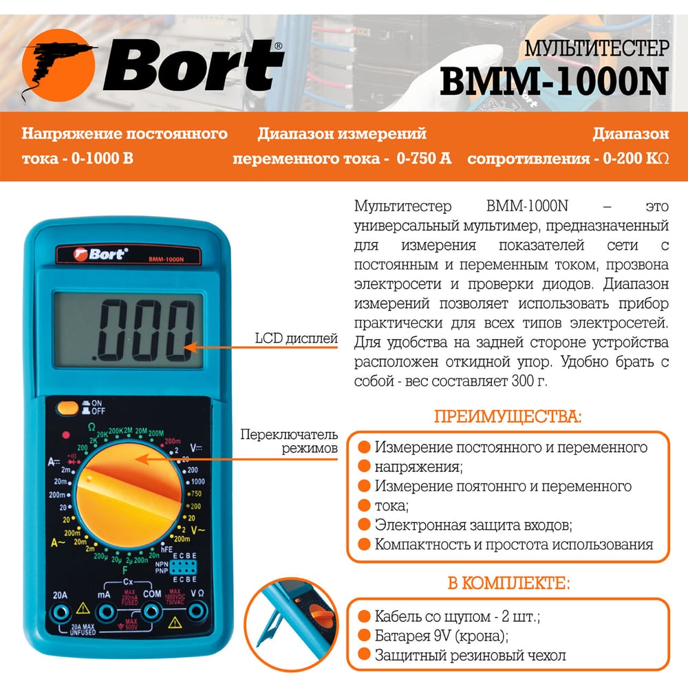 | Постоянное напряжение | 0-1000 В |