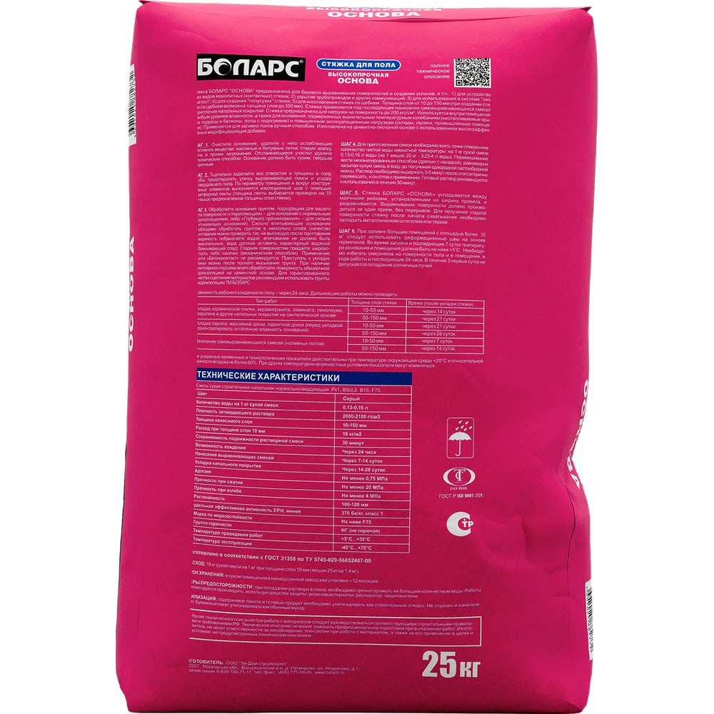 | Расход воды на 1 кг сухой смеси | 0.16 л |