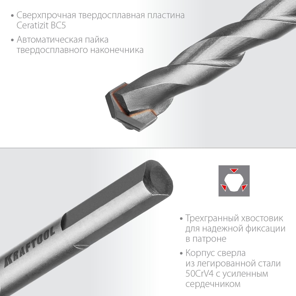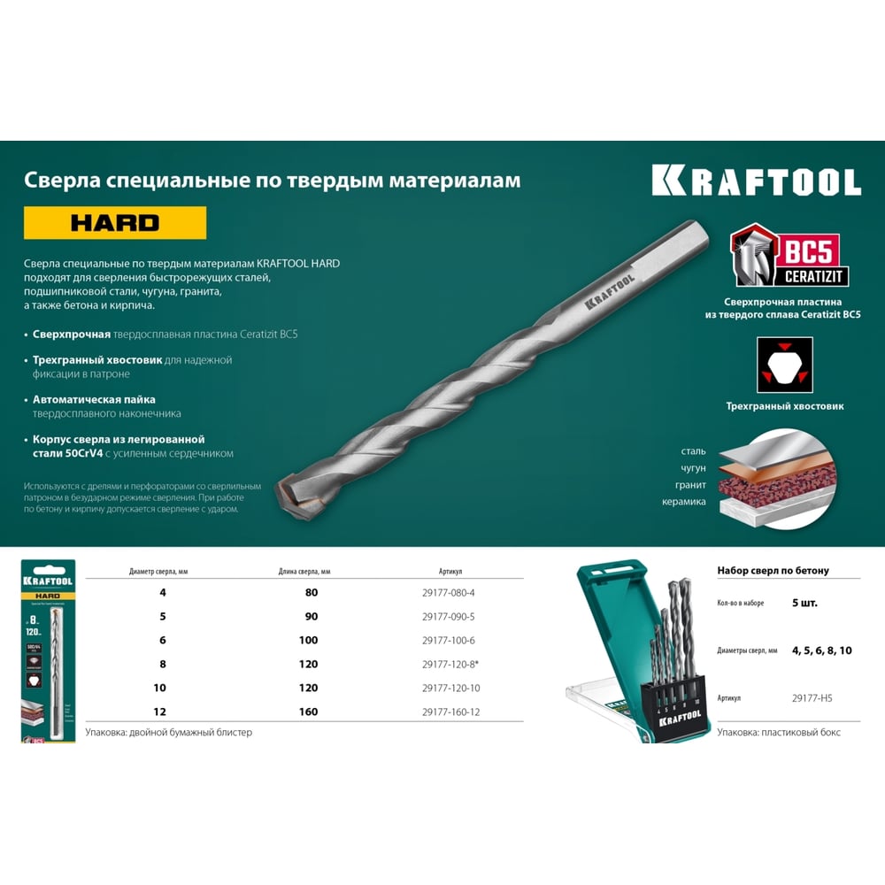 Набор сверл по по твёрдым материалам KRAFTOOL Hard 5 шт, 4-5-6-8-10 мм 29177-H5