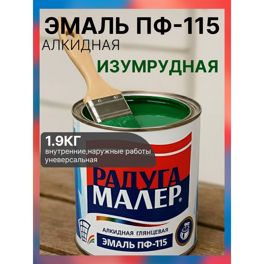Краска быстросохнущая, атмосферостойкая Радугамалер ПФ-115 ГОСТ изумрудная 0,9 кг 4650001272225