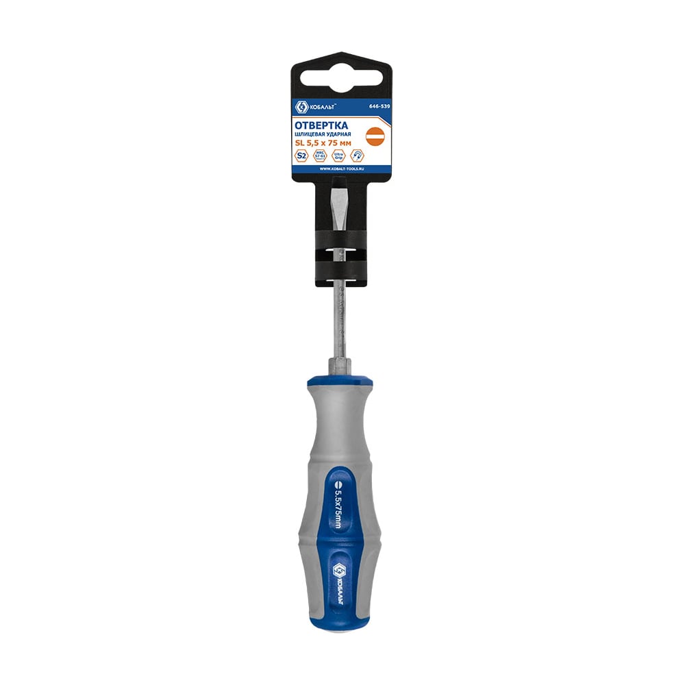Отвертка ударная Ultra Grip SL 5.5 x 75 мм S2 КОБАЛЬТ 646-539