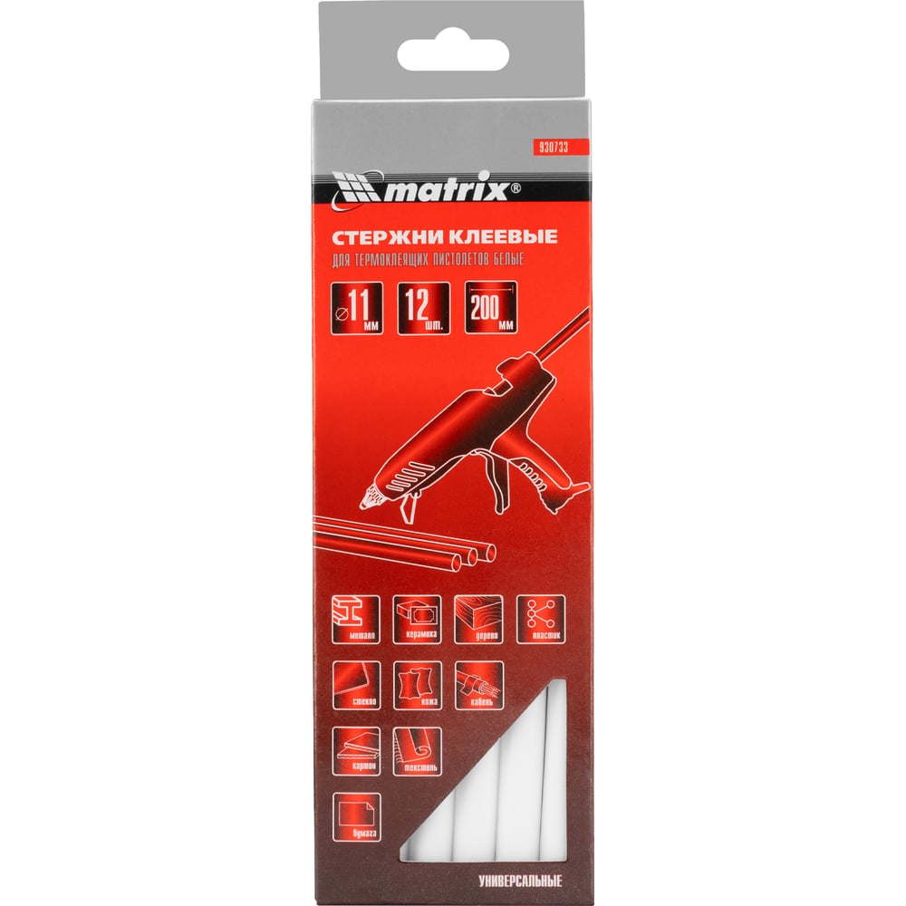 Стержни клеевые белые (11 мм; 200 мм; 12 шт.) MATRIX 930733