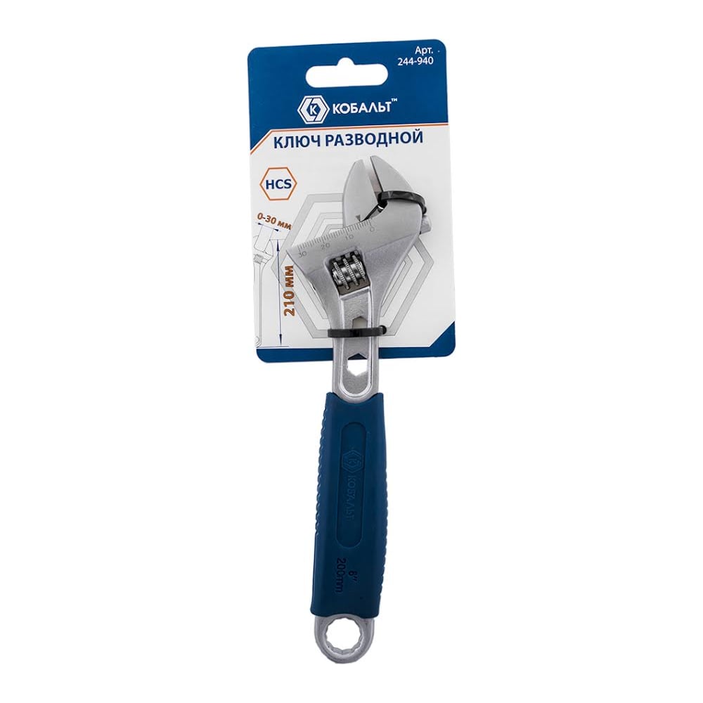 Разводной ключ 210мм, ширина захвата 30мм, двухкомпонентная рукоятка КОБАЛЬТ 244-940