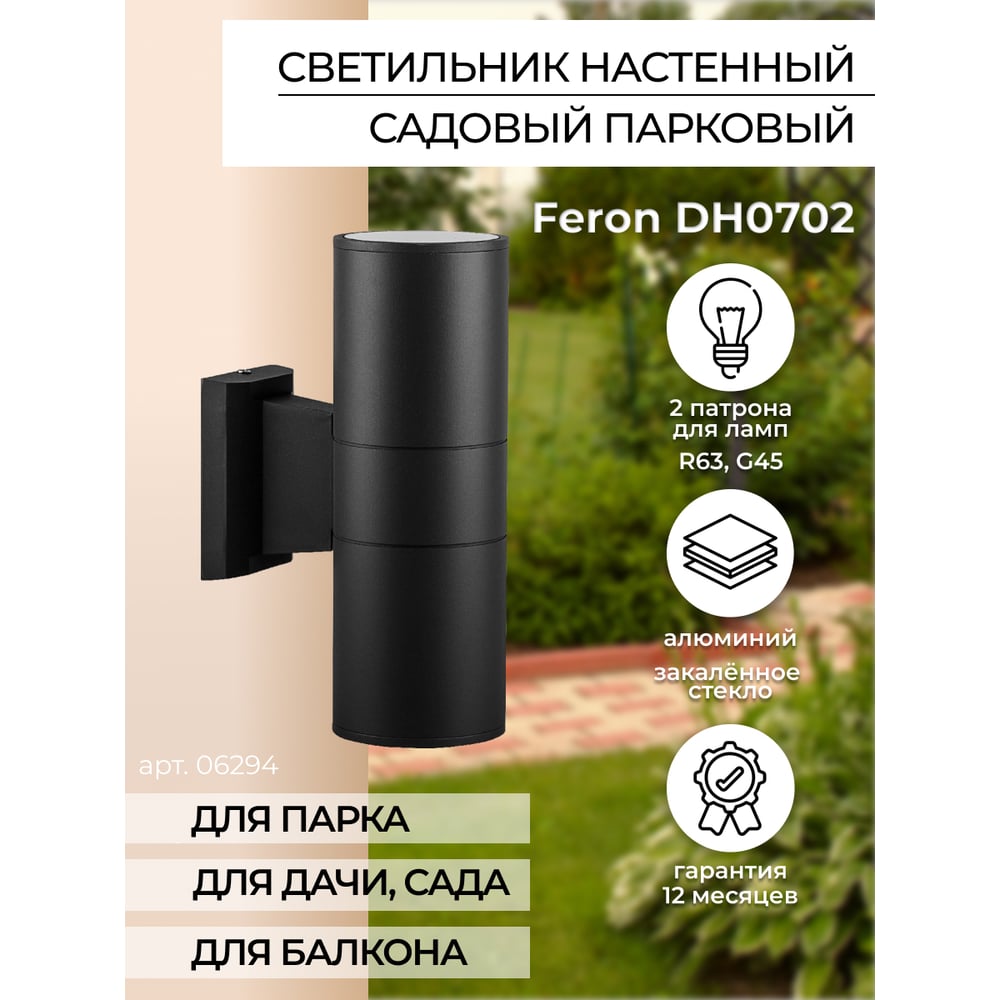 Садово-парковый светильник FERON DH0702 230V 2*E27 черный 06294
