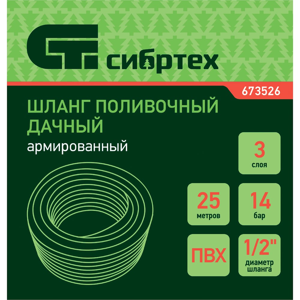 СИБРТЕХ Шланг поливочный армированный ПВХ 1/2 25м Дачник 673526