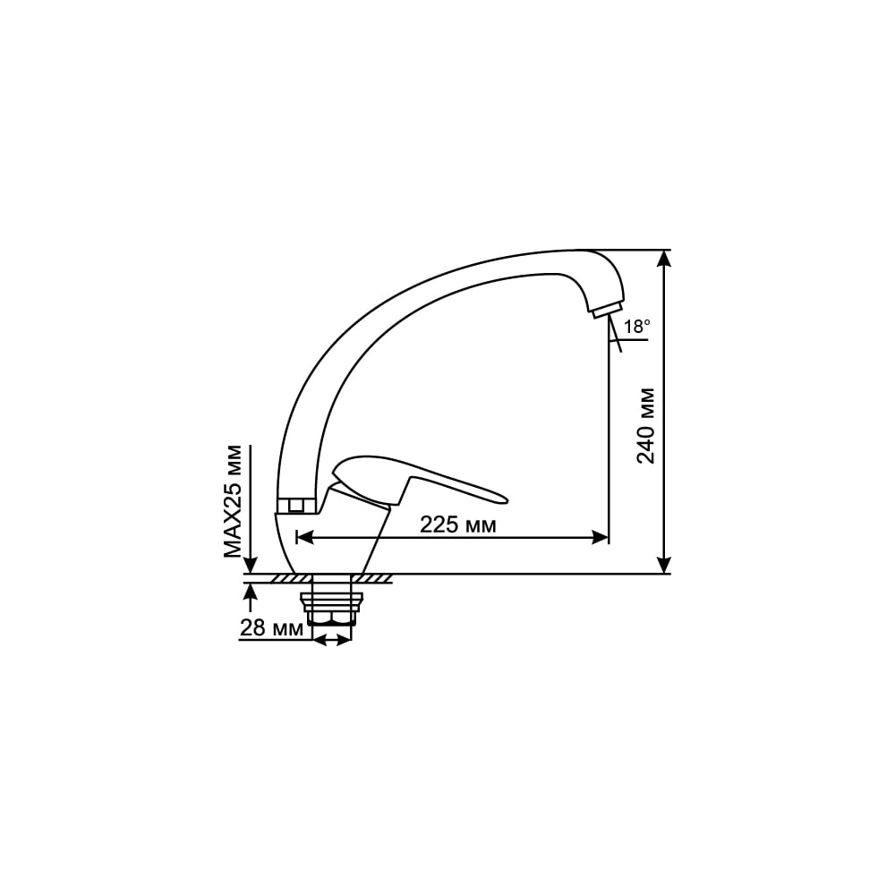 | Длина излива | 225 мм |