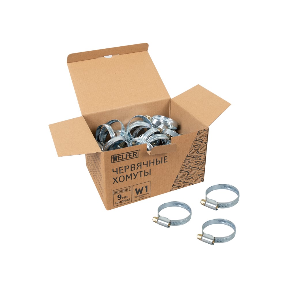 Хомут HELFER W1, 30-45 мм, оцинкованная сталь, уп. 50 шт. HF004041