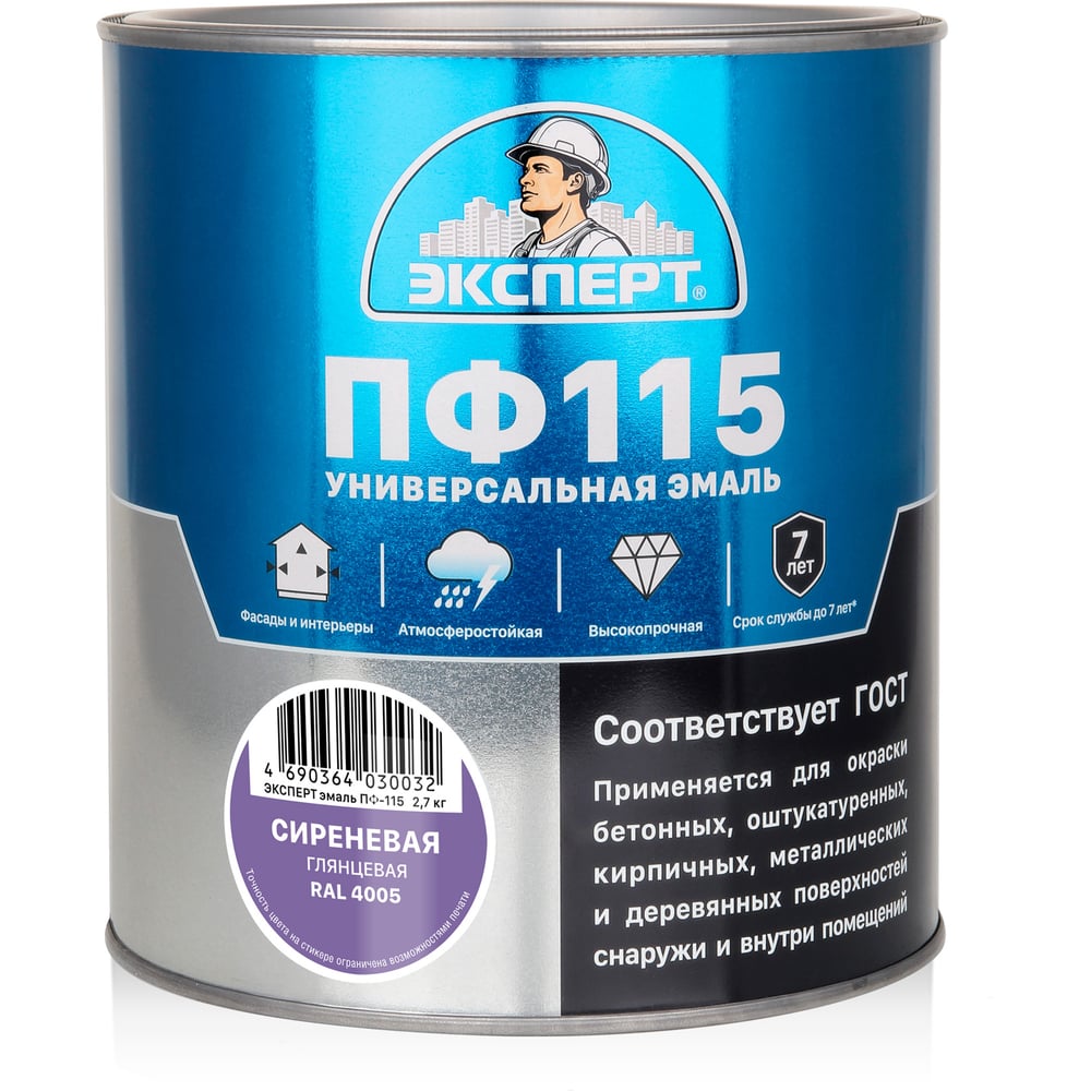 Эмаль ЭКСПЕРТ ПФ-115 глянцевая, сиреневая, RAL 4005 2.7 кг 34128