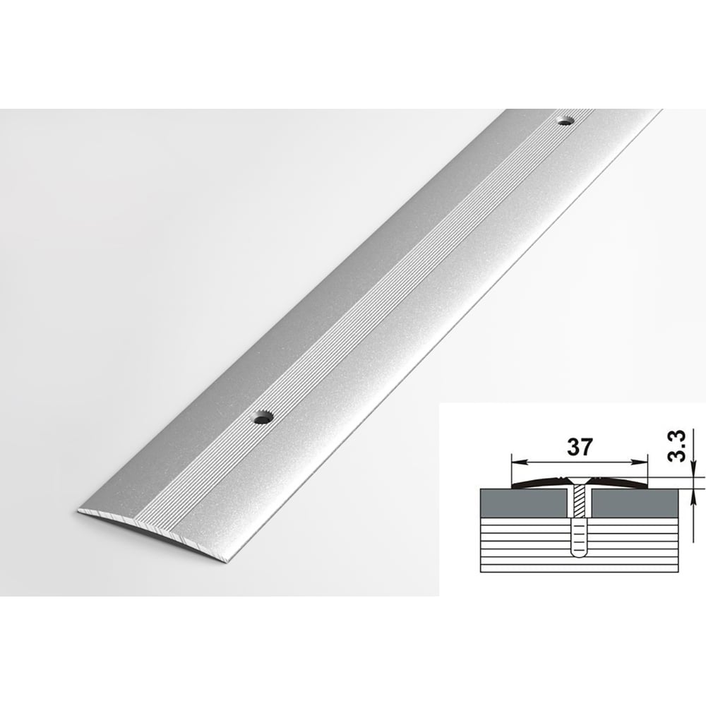 Порог прямой алюминиевый ЛУКА (37 мм, 0,9 м, порошковое покрытие, Серебро) 00000002313