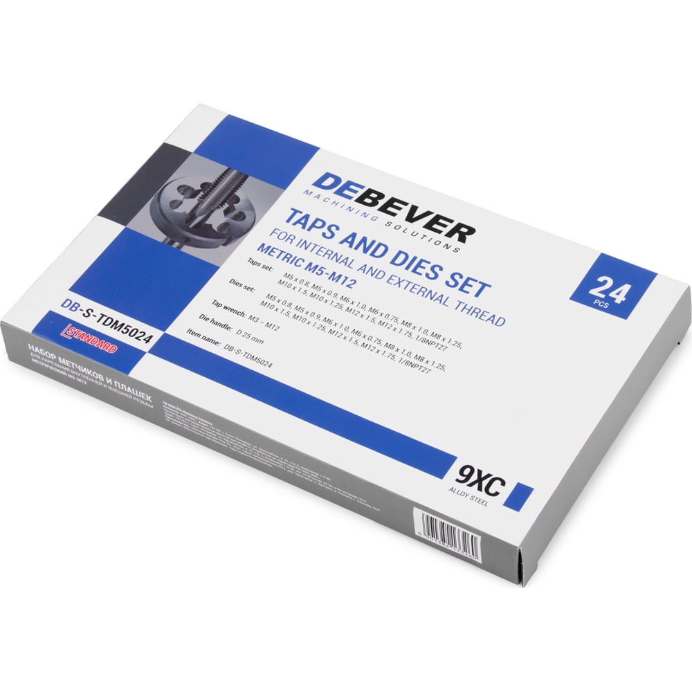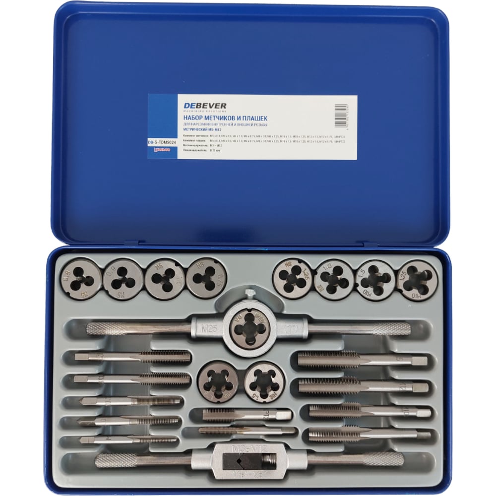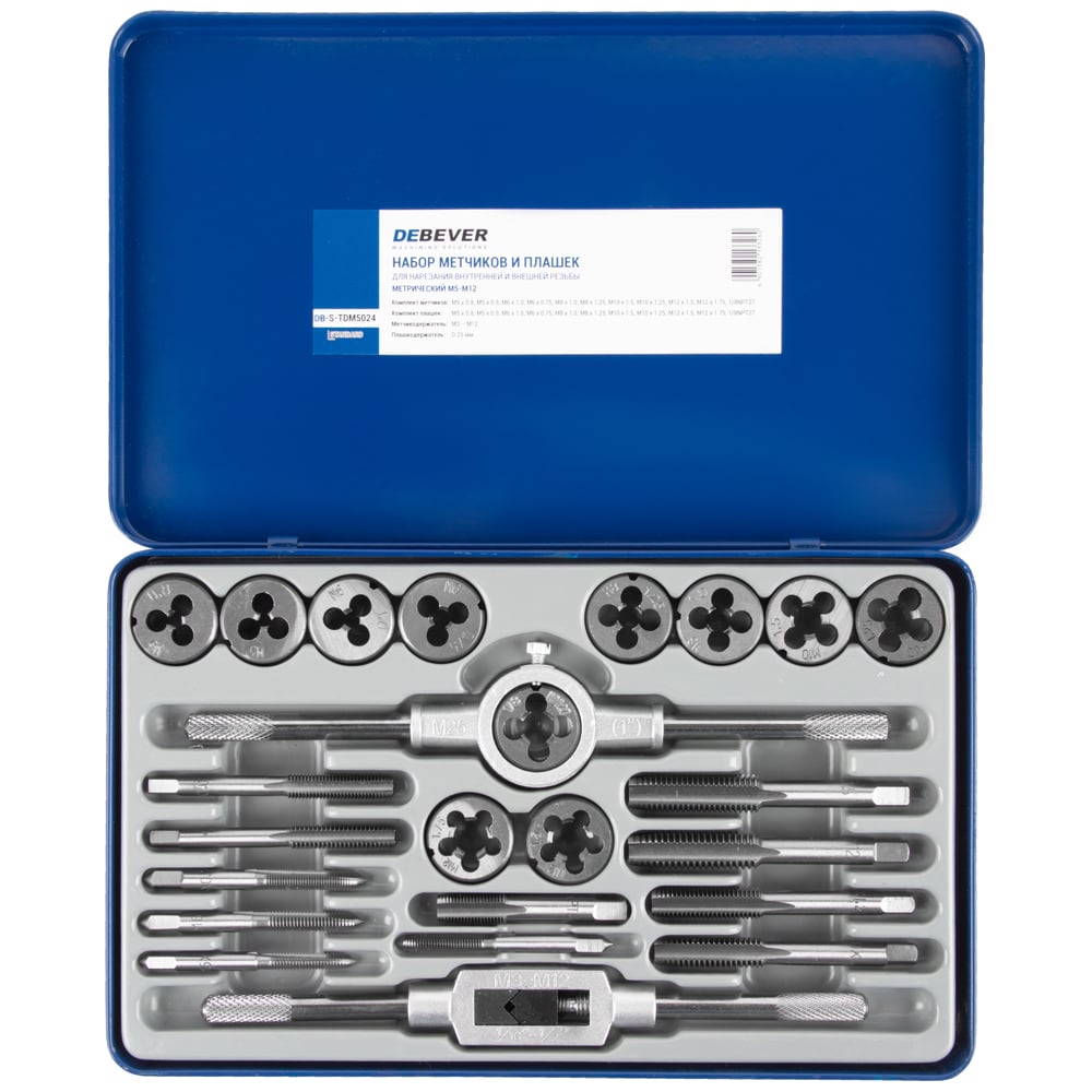 Набор метчиков и плашек Debever Machining Solutions М5 - М12, 24 предмета, метрическая резьба DB-S-TDM5024