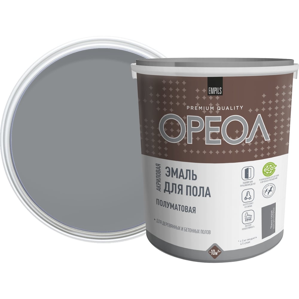 Акриловая эмаль для пола Ореол (полуматовая; тёмно-серая; 2.3 кг) 78186