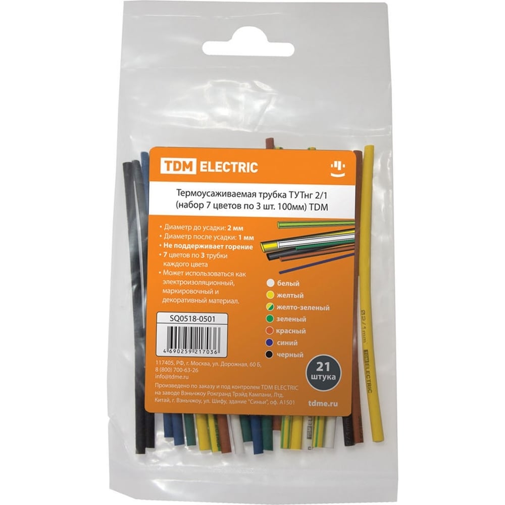 Термоусаживаемая трубка TDM ELECTRIC ТУТнг 2/1 набор 7 цветов по 3 шт. 100мм SQ0518-0501