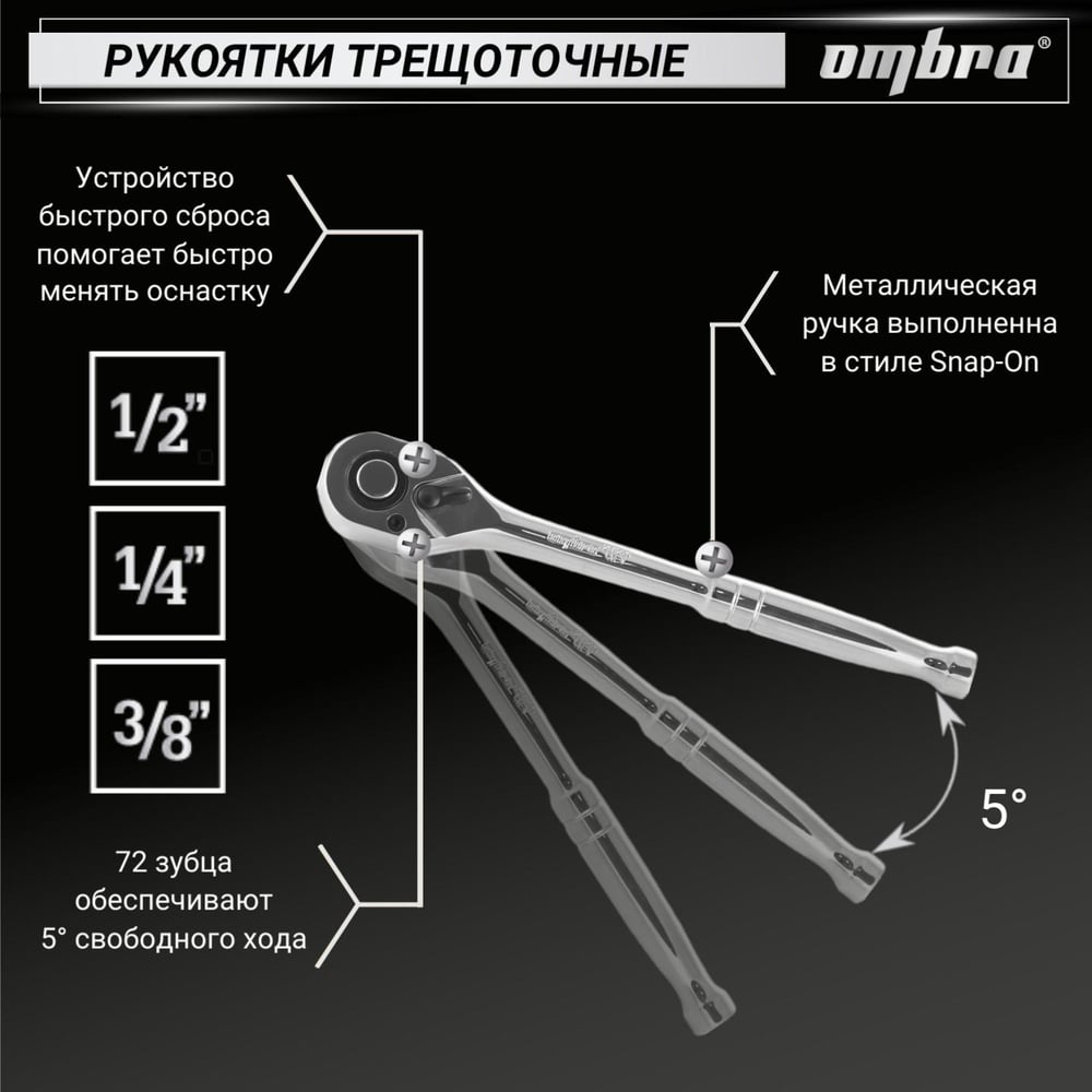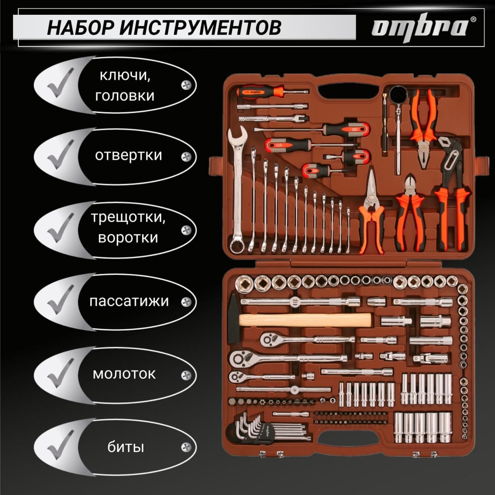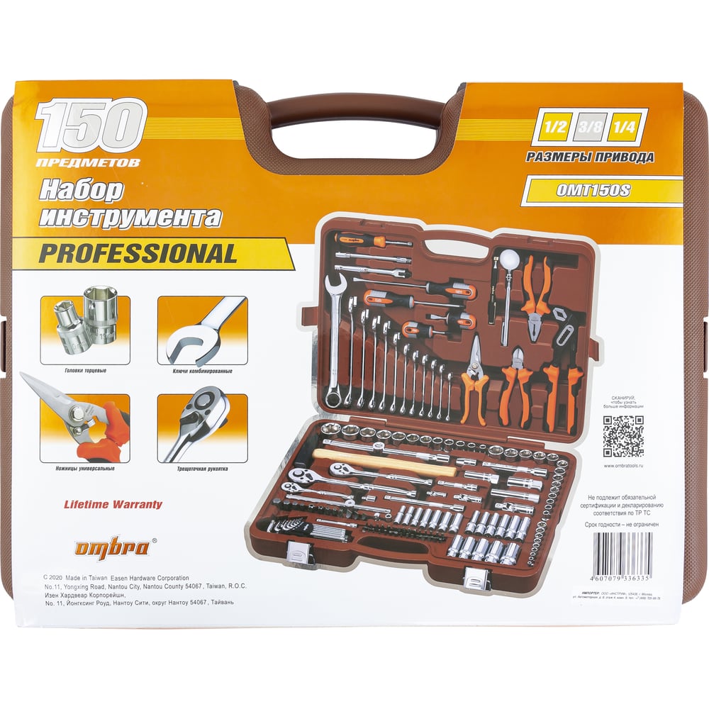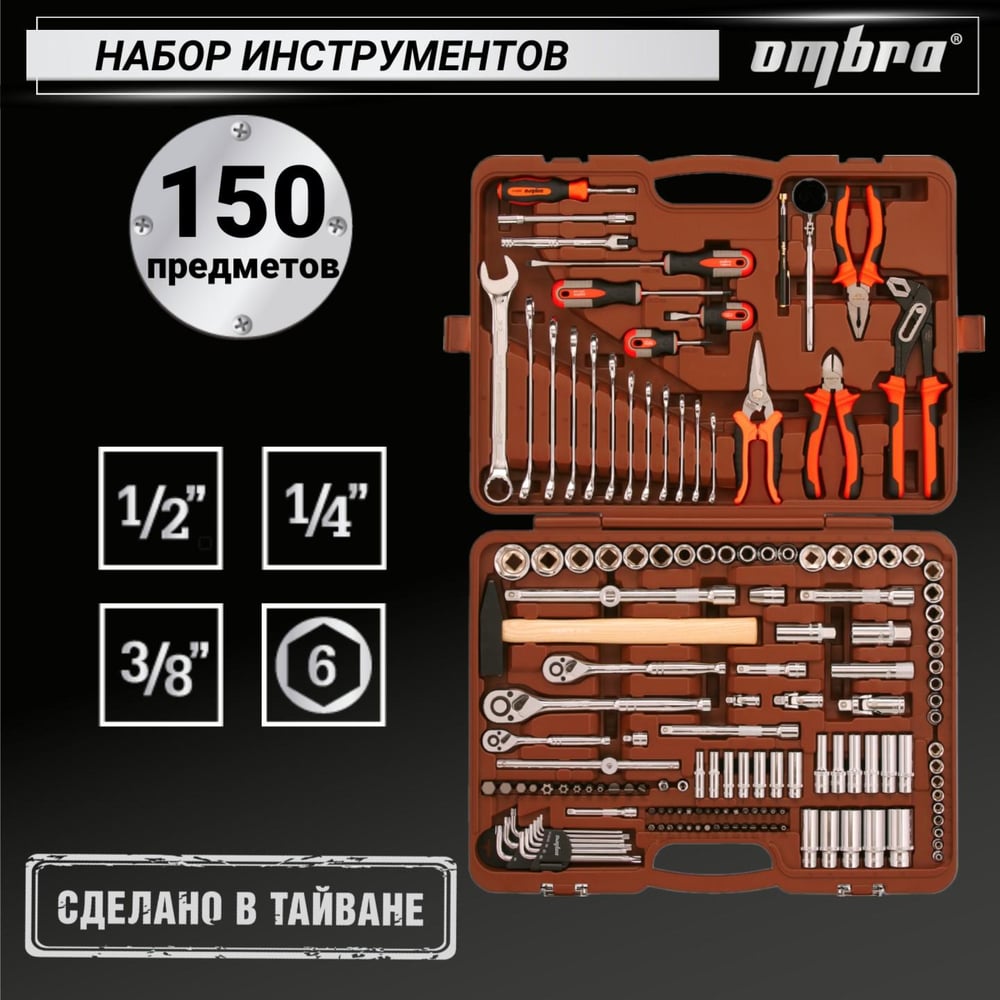 Универсальный набор инструмента Ombra OMT150S/OMT150S18 1/2"DR, 3/8"и 1/4"DR, 150 пр. 55370 055370