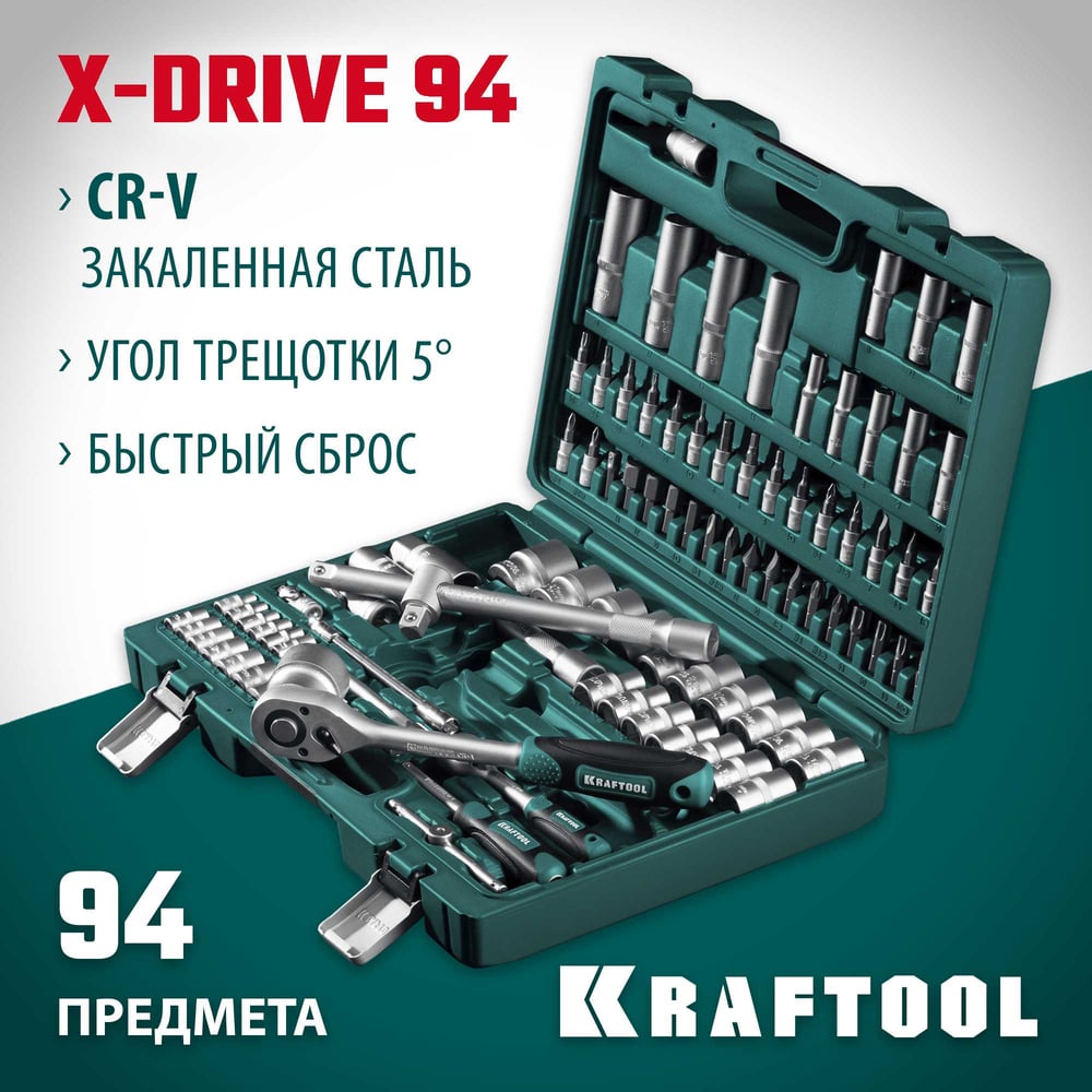 Универсальный набор инструмента KRAFTOOL X-Drive 94, 94 предм., (1/2"+1/4") 27883-H95_z03