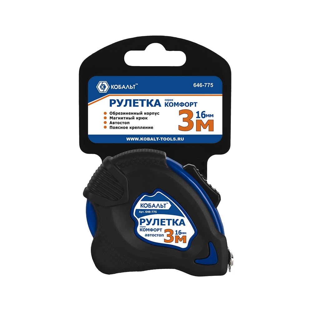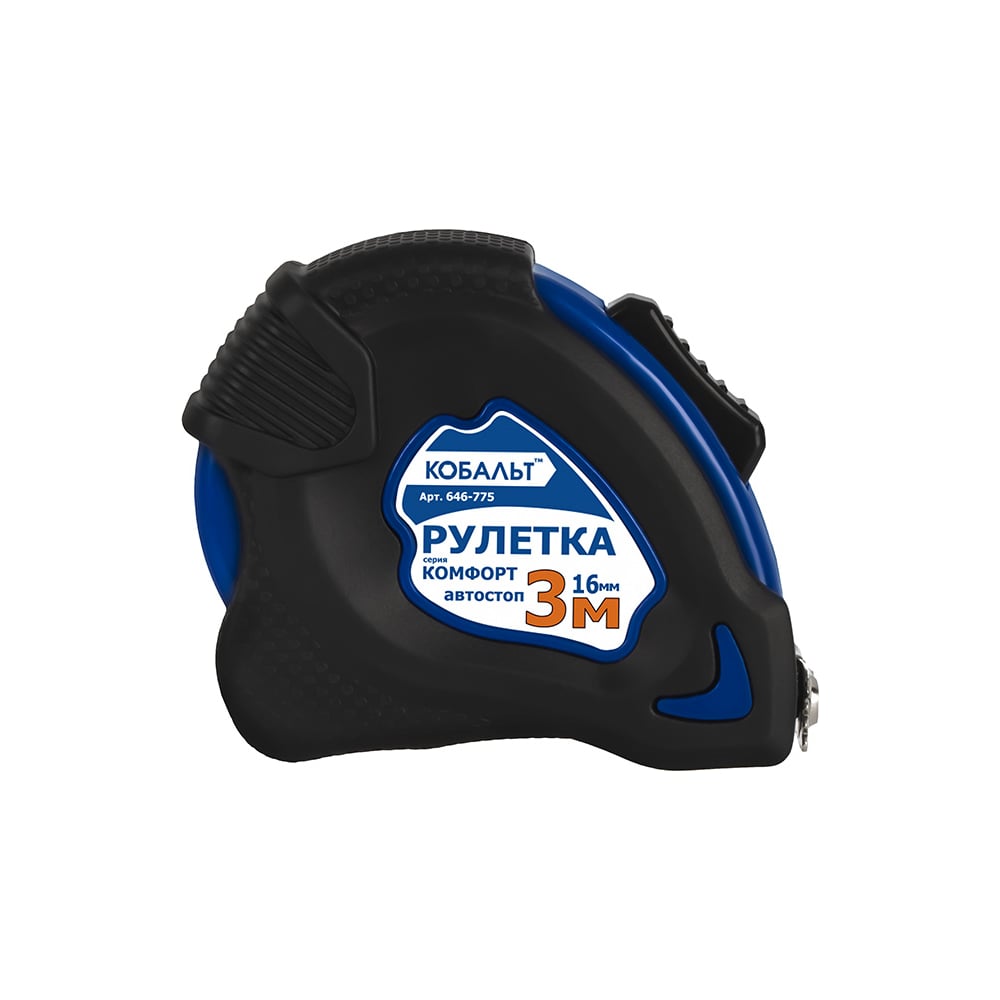 Рулетка Комфорт (3м x 16мм) обрезиненный корпус КОБАЛЬТ 646-775