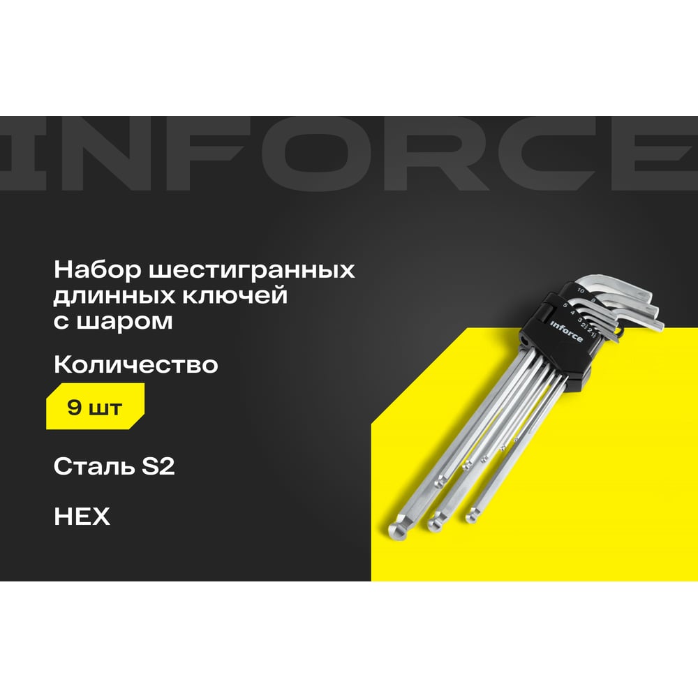 Набор шестигранных экстра-длинных ключей с шаром 9 штук Inforce, размеры 1,5-10мм, 06-05-95