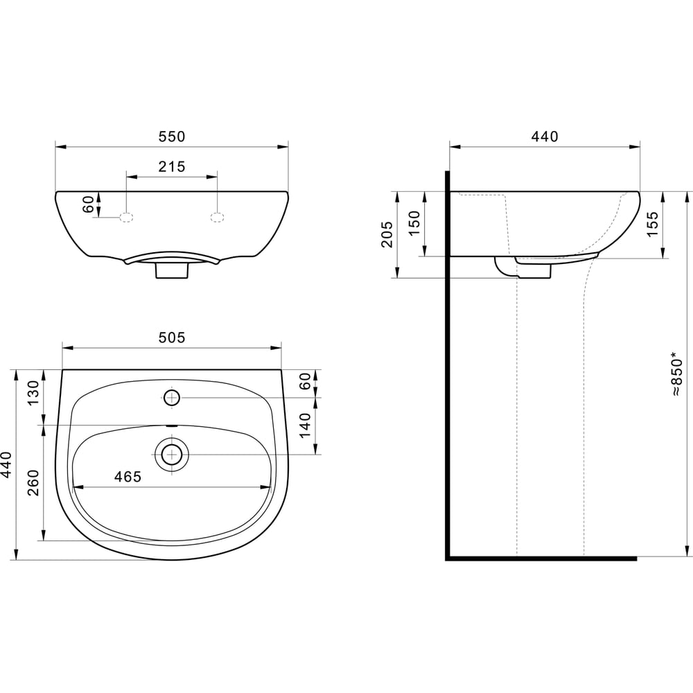 | Ширина раковины | 550 мм |